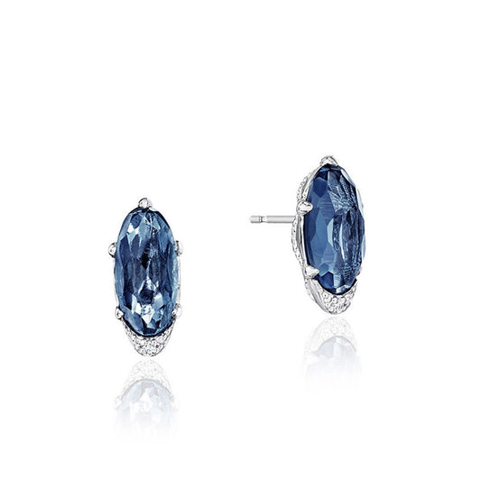 These sterling silver earrings from Tacori's Horizon Shine collection, with an oval-shaped London Blue topaz...