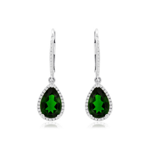 Radiant and luxurious, these Russalite drop earrings showcase vivid pear cut gemstones in gleaming 14k...