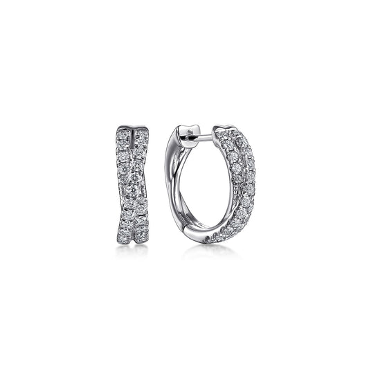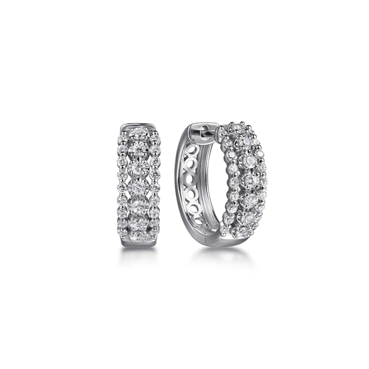 Elevate your elegance with these stunning 14K White Gold Multi-Row Diamond Huggie Earrings. Expertly crafted...