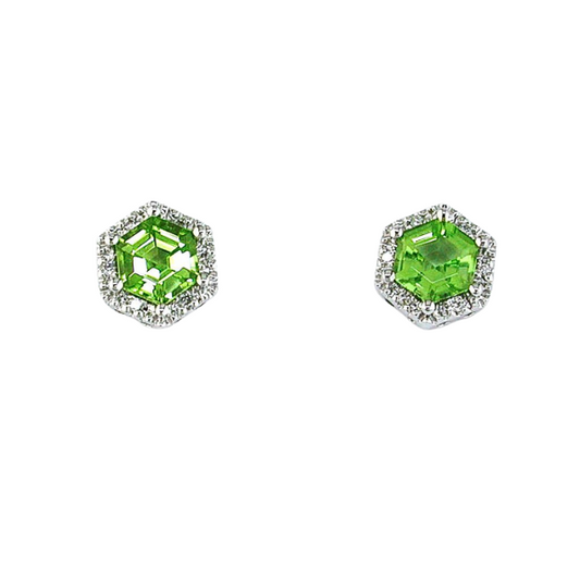 Capture the essence of elegance with our stunning 14K White Gold Peridot and Diamond Stud...