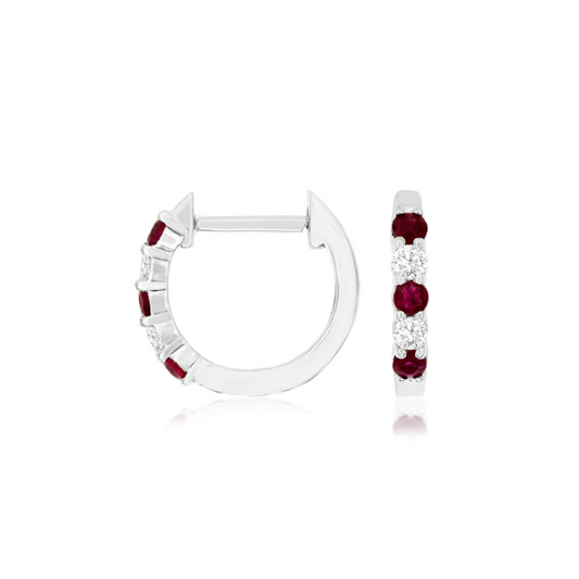 Combining the sparkle of white diamonds with the rich red hue of .15ctw rubies, these...