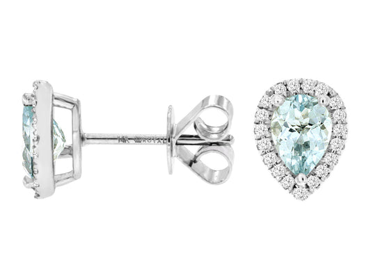 Subtle pear shaped light blue aquamarines (1.30ctw) garnish these classic March birthstone earrings. Nestled within...