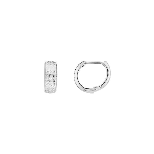 Mini hoops are an essential for any wardrobe. These diamond-cut 14K white gold huggie hoop...