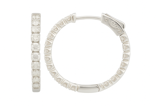 14K White Gold Small Diamond Hoop Earrings (.25ctw) (15MM)