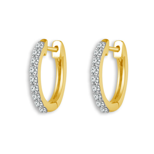 Elevate your everyday style with these 14K Yellow Gold Pave Diamond Huggies. Each earring is...