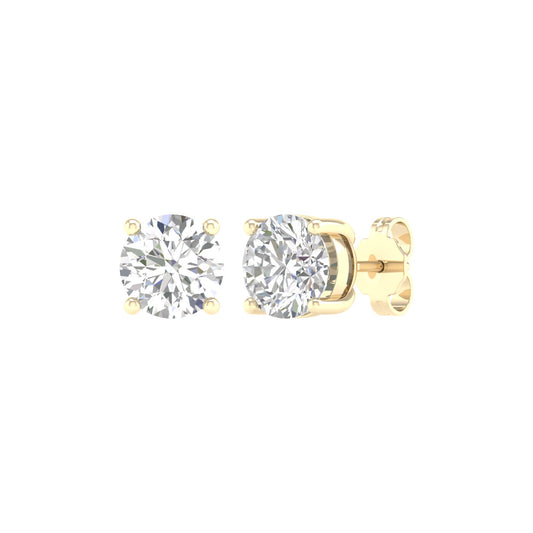 Timeless round lab-created diamond solitaire stud earrings, IGI-certified, are set in 14K yellow gold and...