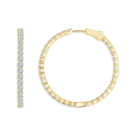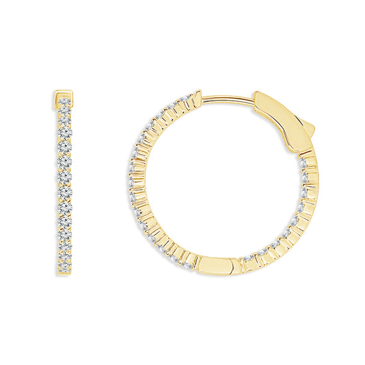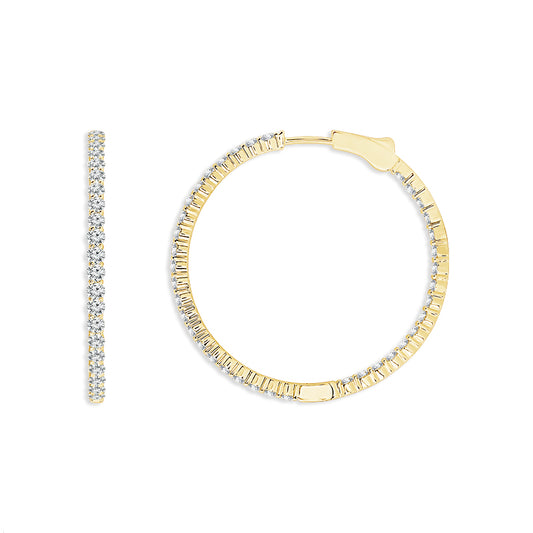Transform your look with our exquisite 14k yellow gold round inside out diamond hoops, boasting...