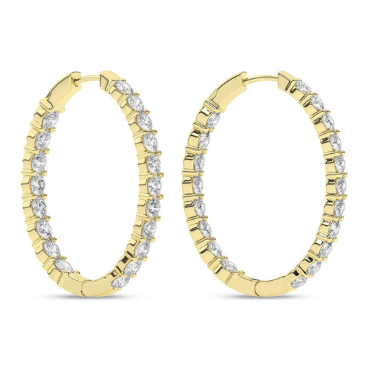 Transform your look with our exquisite 14k yellow gold oval shaped, inside out diamond hoops,...