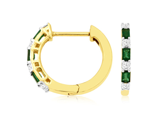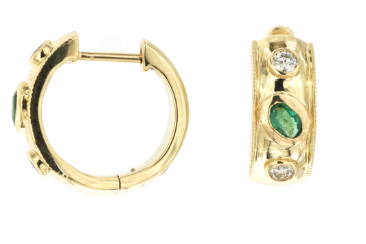 Introducing our exquisite 14k Yellow Gold Emerald and Diamond Hoop Earrings, a stunning addition to...