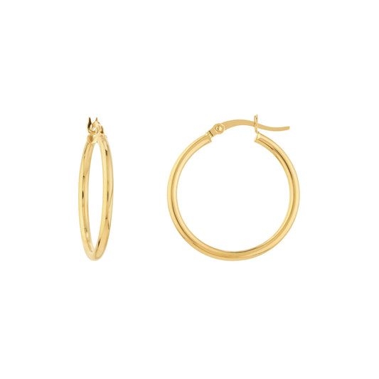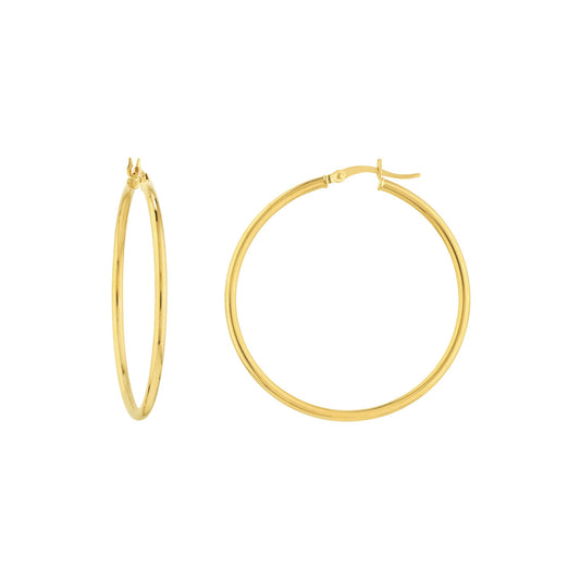 Thin polished hoops are an essential to any wardrobe. Heighten any look with these 10K...