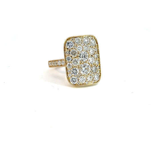 Make a powerful style statement with the 14K Yellow Gold 3.18CTW Fancy Pave Shield Ring,...