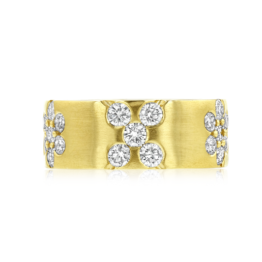 XO’s signature design anniversary ring consists of ‘X’ and ‘O’ shaped clusters of diamonds, semi-bezel...