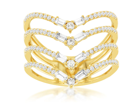 This vibrant V shaped ring adds a modern twist to any ensemble. This smooth 14K...