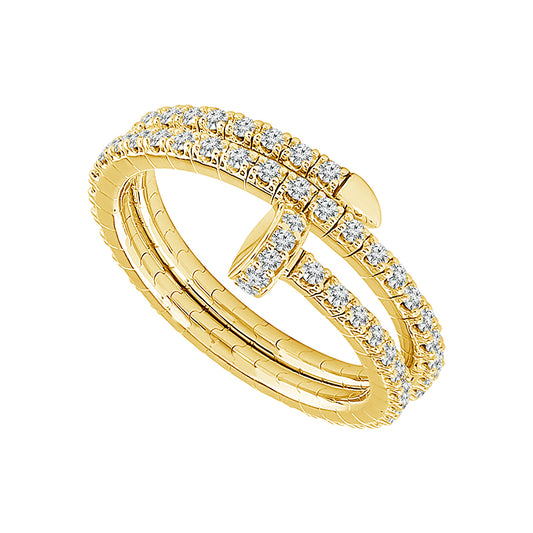 Make a bold statement with this 14K Yellow Gold Diamond Nail Wrap Flexible Ring. Designed...