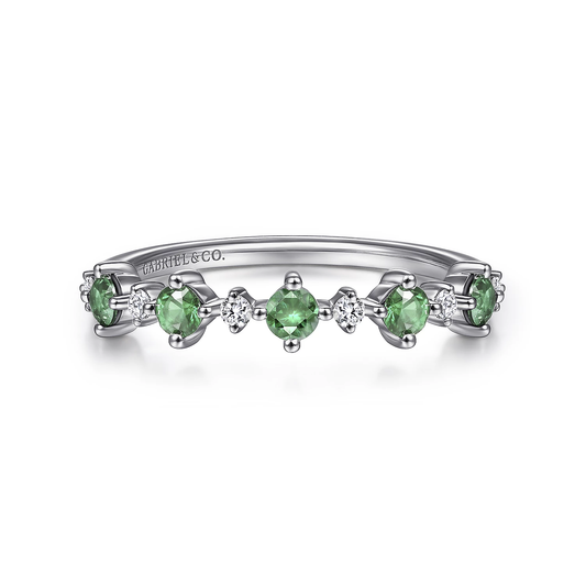 Experience timeless elegance with our 14K White Gold Alternating Round Diamond and Emerald Ring. This...