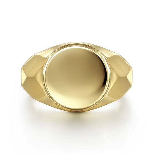 The modern version to our classic signet ring. Featuring facets of 14k yellow gold, this...