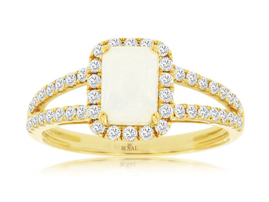 Discover the timeless elegance of our 14K Yellow Gold Opal and Diamond Ring. This stunning...
