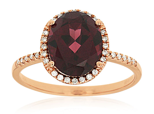 Make a statement with our 14K Rose Gold Rhodolite and Diamond Ring, a true symbol...