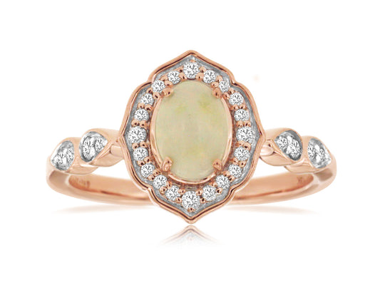 Crafted in 14K rose gold this 0.50ct oval opal is truly eye catching. Featuring a...