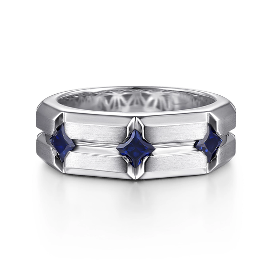 925 Sterling Silver Ring with Princess Cut Sapphire Stations