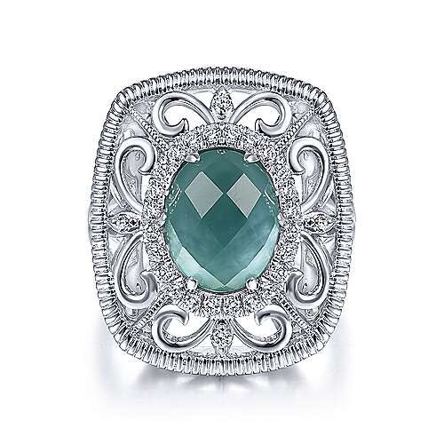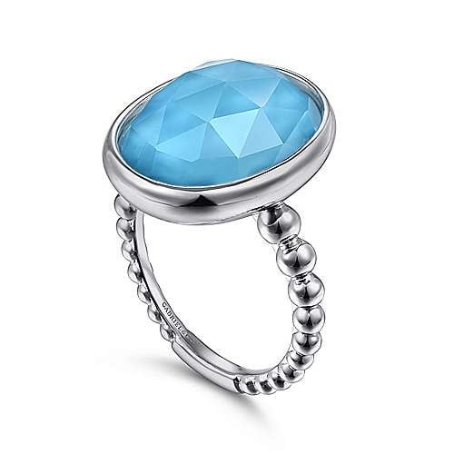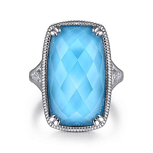 Sterling Silver Rock Crystal Turquoise Long Cushion Cut Ring
