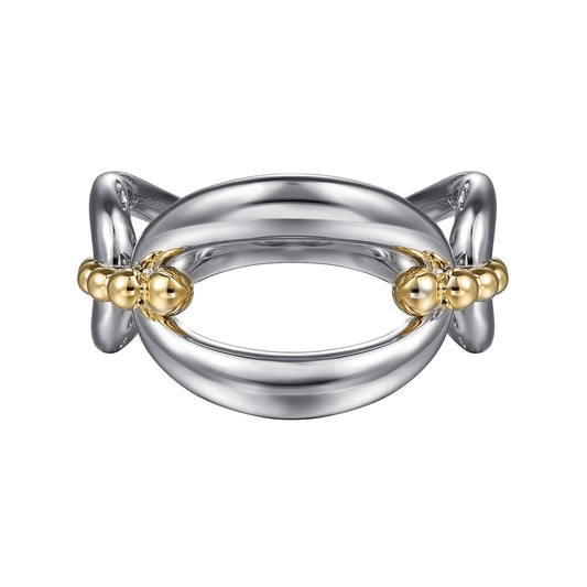 Discover elegance with our 925 Sterling Silver and 14K Yellow Gold Bujukan Link Ring. This...