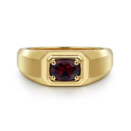 14K Yellow Gold Garnet Mens Ring in Sand Blast Finish Width 8.50 mm Thickness 5.00...