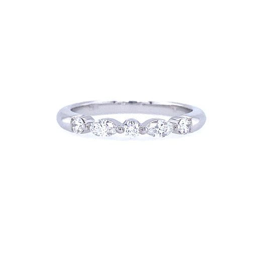 Crafted from 18k white gold this five stone band consists of alternating round and marquise...