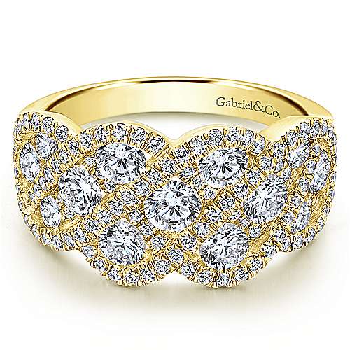 Gabriel & Co. 14kt. Yellow Gold Pave Diamond Ring. (1.77ctw) A loose braid of pave...