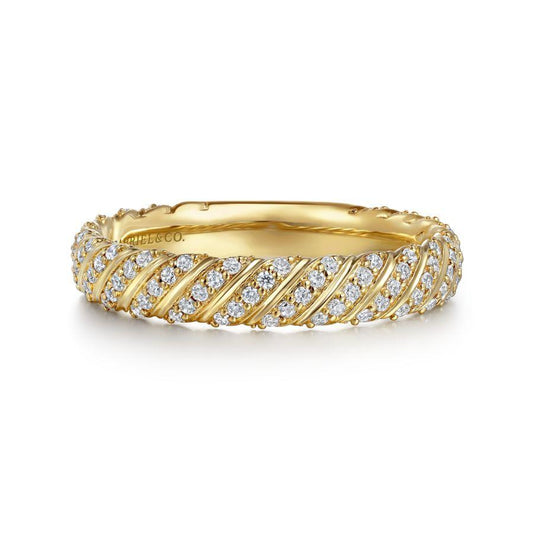 14K Yellow Gold Diamond Rope Stackable Ladies Ring