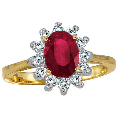 This 14K Yellow Gold Oval Ruby and Diamond Ring captures timeless elegance in a Lady...