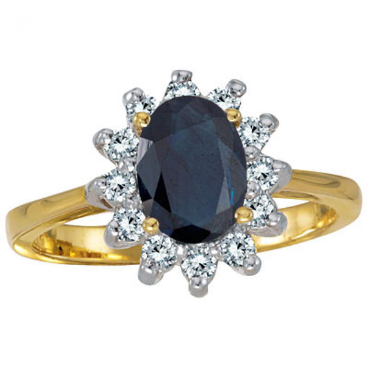 This 14K Yellow Gold Oval Sapphire and Diamond Ring captures the timeless elegance of the...