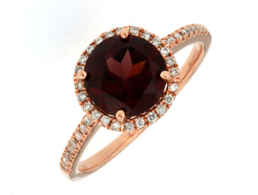 An round cut garnet (2.40ct) is the striking focal point of this commanding fashion ring....