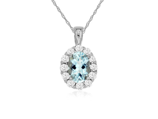 A .68ct oval cut aquamarine is the star in this beautiful 14k white gold necklace....