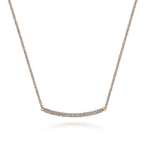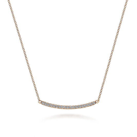 Crafted in 14k rose gold, this curved diamond bar necklace is the perfect addition to...