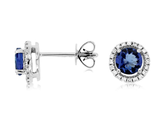 In these timeless stud earrings, each intensely blue round cut tanzanite (1.00ctw) is surrounded and...