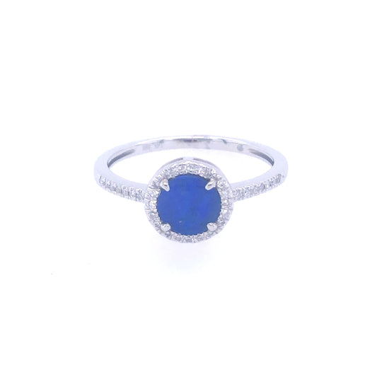 Crafted in 14K white gold this .65ct round opal is truly eye catching. Featuring a...