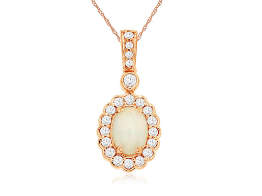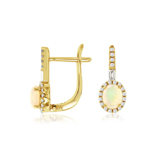 Vibrant oval cut opals garnish these classic October birthstone earrings. Nestled within halos of dazzling...