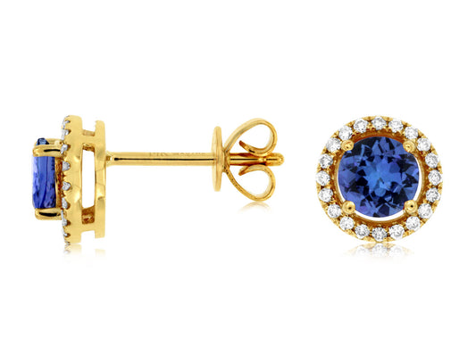 In these timeless stud earrings, each intensely blue round cut tanzanite is surrounded and enhanced...