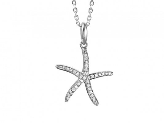 14KT White Gold .20CTW Small Diamond Starfish Pendant (Chain not included)