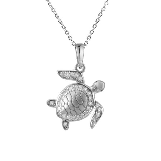 14 KT White Gold Small Diamond Turtle Pendant (.14CTW) (No Chain)