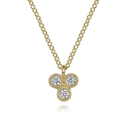 A trio of diamonds form this stunning 14k yellow gold necklace. With .09ctw this necklace...