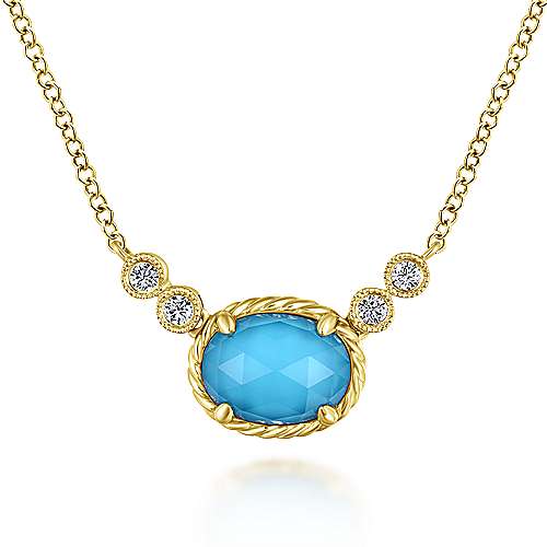 Embrace vibrant color with this tempting fashion necklace showcasing a faceted oval cut turquoise rock...