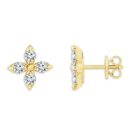 14K Yellow Gold Floral Inspired Diamond Stud Earrings (3/4ctw)