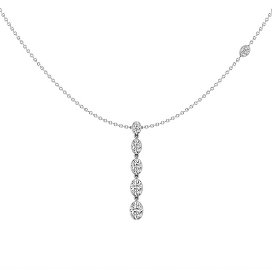 This easy-to-layer, 16-18" lab grown oval diamond necklace totaling 1 3/8 carats, drapes beautifully around...