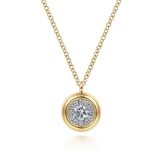 Elevate your everyday elegance with this stunning 14K yellow gold diamond halo pendant necklace. At...