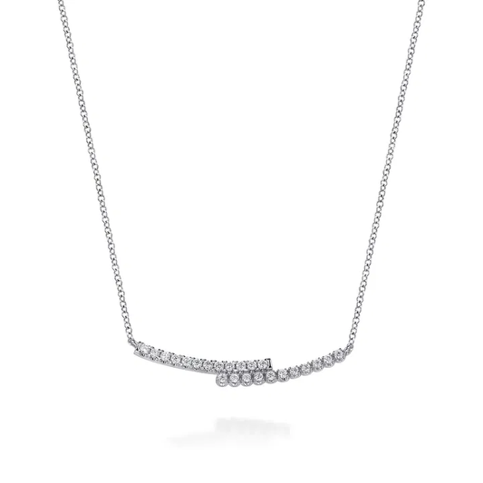 Add a modern twist to classic elegance with this 14K white gold diamond bypass bar...