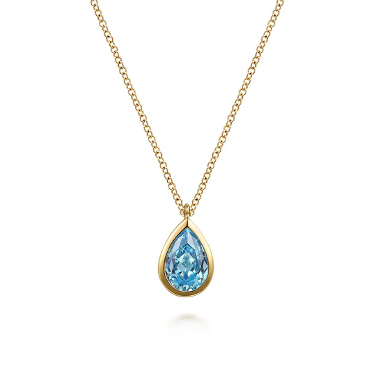 This elegant 14K Yellow Gold Teardrop Blue Topaz Pendant Necklace is the perfect addition to...