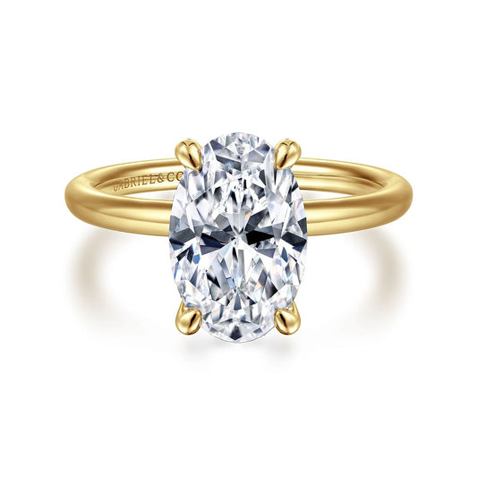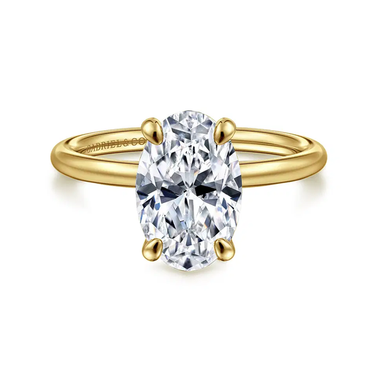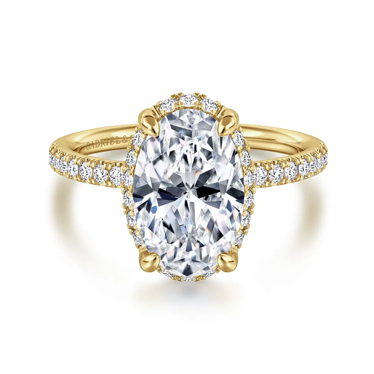 This elegant 14K Yellow Gold Oval Hidden Halo Diamond Engagement Ring is a timeless symbol...
