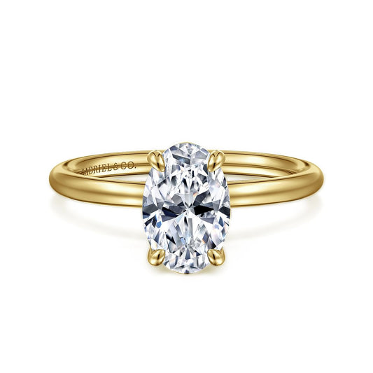 This 14K Yellow Gold Oval Solitaire Engagement Ring features a timeless and elegant design, perfect...